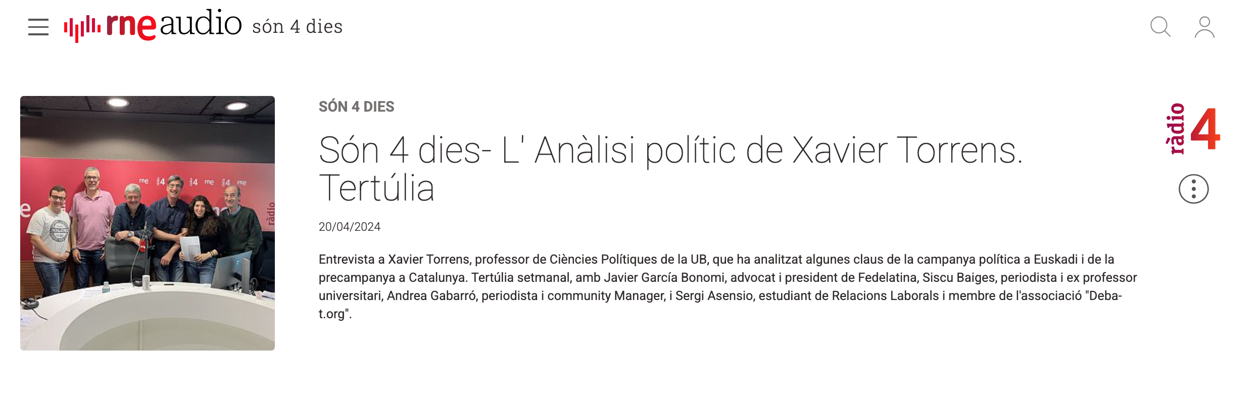 “SÓN 4 DIES” DE RÀDIO NACIONAL ESPANYOLA
